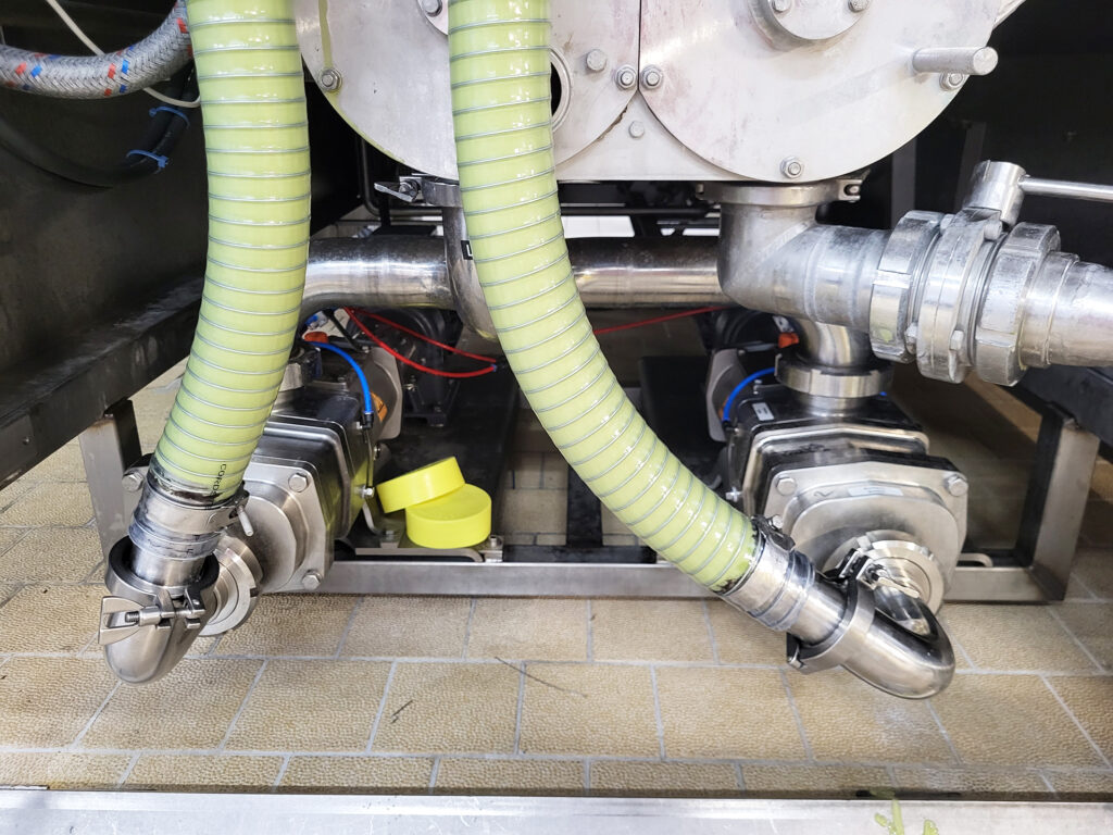 To achieve a visually uniform finish, the coating system relies on a stable falling film of chocolate. Operating at approximately 40°C and viscosities between 500 and 2,000 mPas, the process places high demands on flow stability and gentle product handling. Previously, pneumatic diaphragm pumps created pulsation in the chocolate flow, leading to uneven coating thickness, increased noise levels and frequent blockages when conveying inclusions.