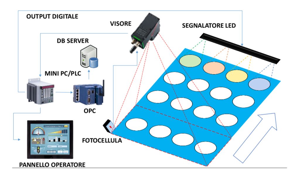 The high-speed monitoring system allows for processing a high volume of products without slowing down the line. The collected data is logged to optimize processes and ensure traceability. The ability to calculate rejects in real time reduces waste and improves efficiency. Each non-standard item is reported by a red or green led so that non-compliant products can be promptly addressed.