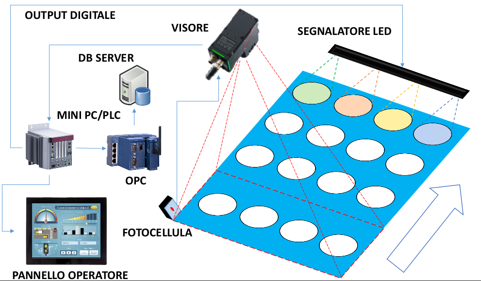 The high-speed monitoring system allows for processing a high volume of products without slowing down the line. The collected data is logged to optimize processes and ensure traceability. The ability to calculate rejects in real time reduces waste and improves efficiency. Each non-standard item is reported by a red or green led so that non-compliant products can be promptly addressed.
