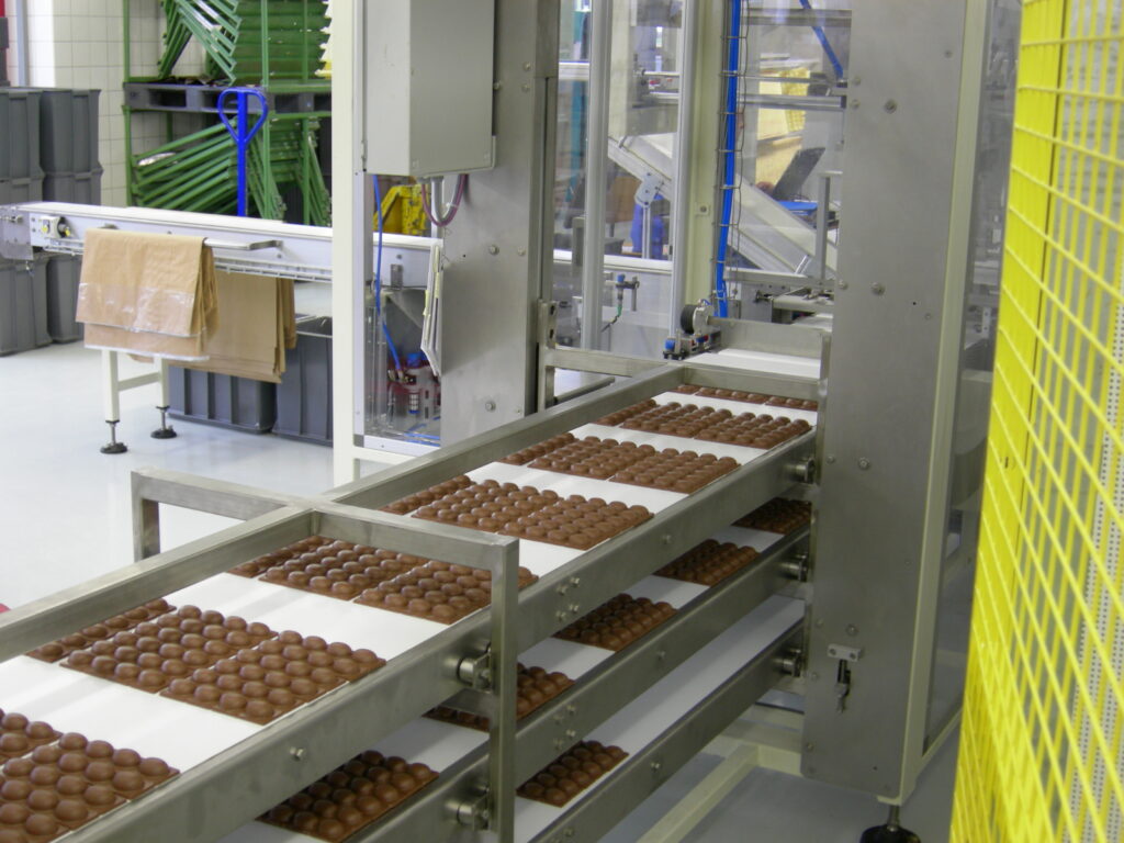Snack production lines typically include product distribution into multiple lanes, followed by flow wrapping, tray loading, secondary packaging, case packing and palletising. When only one accumulation unit is installed, every downstream micro-stop places additional stress on the initial buffer. Upon restart, all upstream machines are then required to increase their speed, often by 10–20%. to compensate for lost production, resulting in increased wear, instability and a higher risk of cascading stops.
