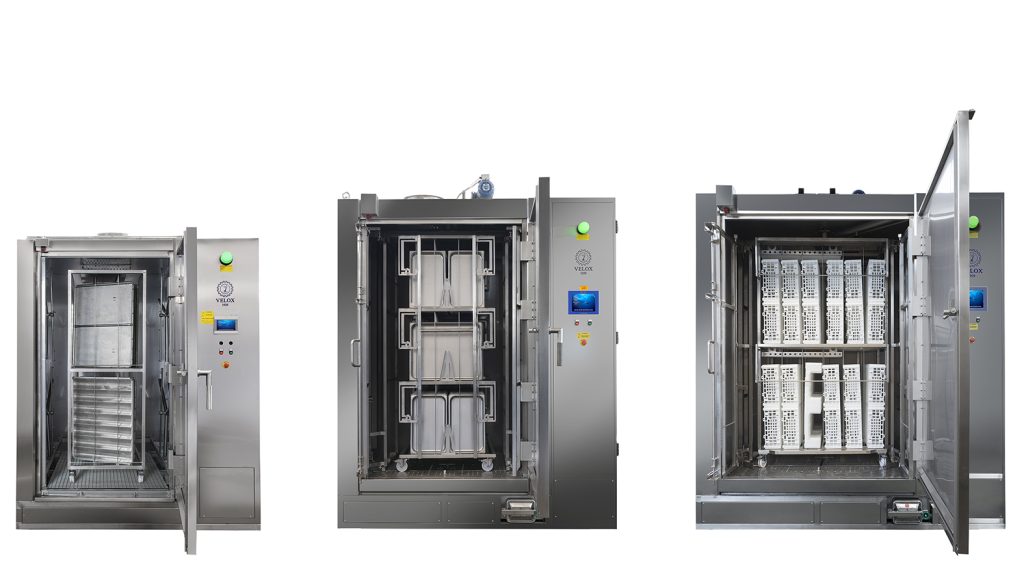 The BF Series Cabin washers by Velox Barchitta meet these demands with cutting-edge technology. Engineered for high-volume throughput of trolleys, crates, trays, and molds, they allow washing and disinfection with just a single operator reducing processing time. Featuring a rotating base washing system with programmable speeds, the BF Series ensures complete coverage, even in compact spaces.